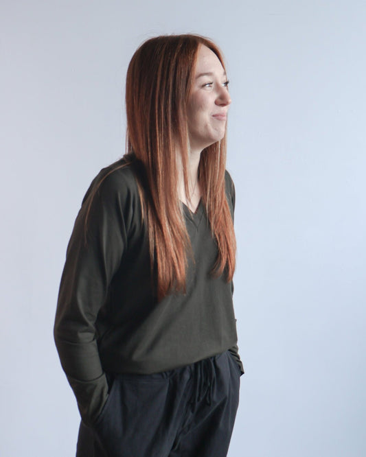 The V-Neck Sweater Tee in Wood Smoke