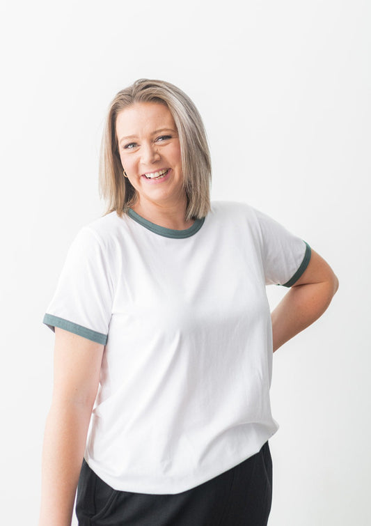 The Perfect Ringer Tee in White/Palm