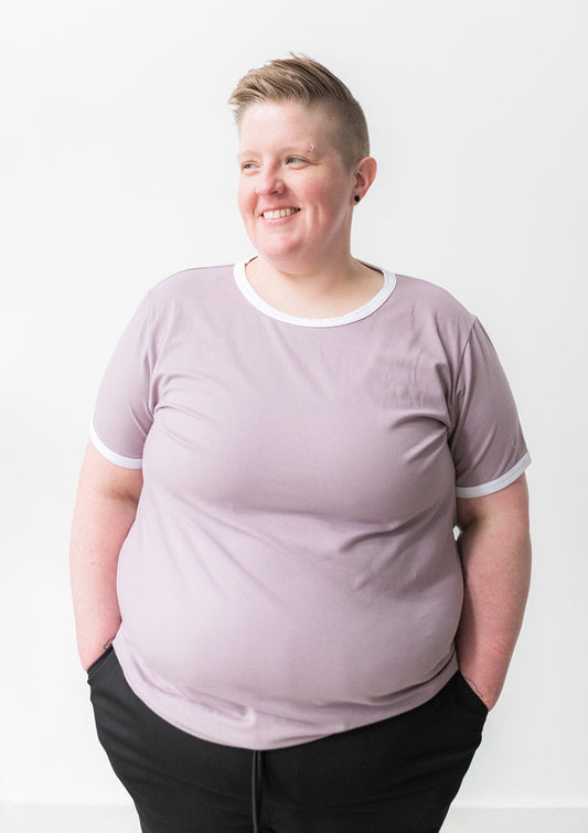 The Perfect Ringer Tee in Lilac/White